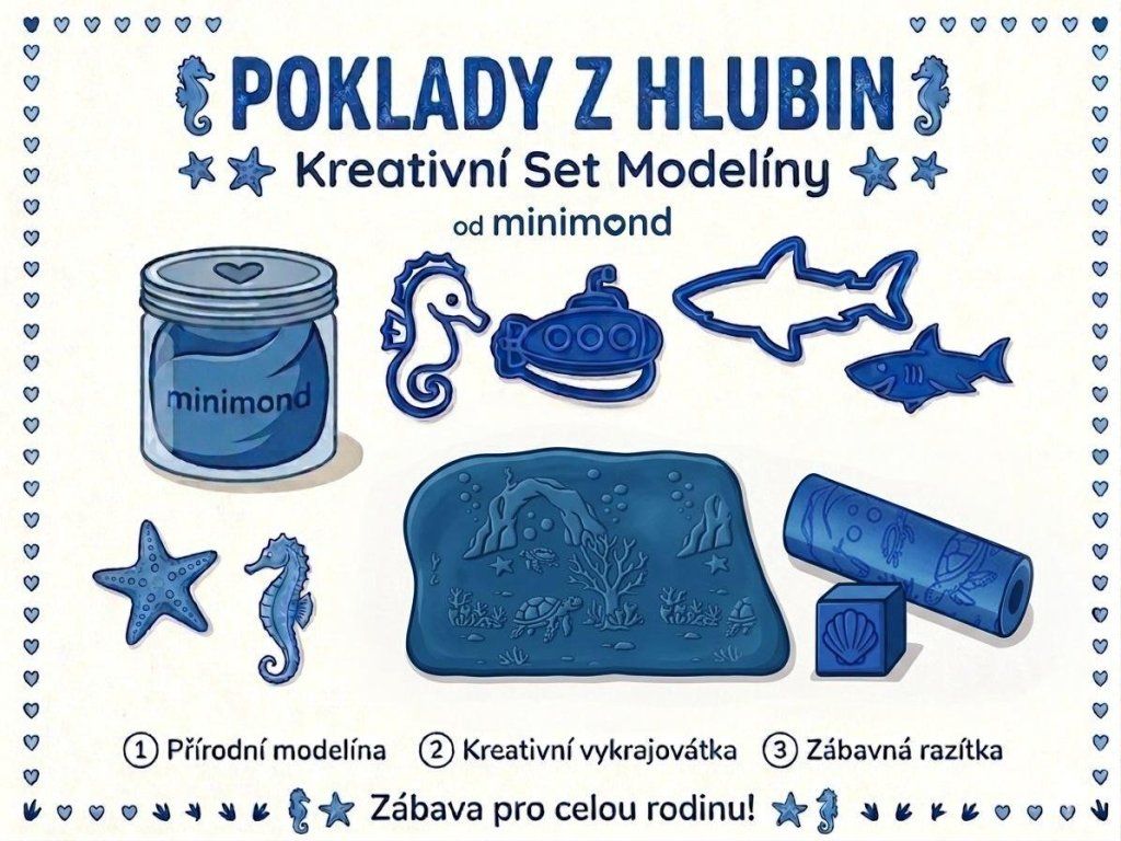 Kdo se skrývá v hlubinách? S naší sadou „Poklady z hlubin“ se vaše dítě vydá na expedici za poznáním mořského světa. Tato sada není jen o tvoření, je to cesta do světa, kde každé mávnutí vlnou a každá ulita vypráví svůj příběh.
